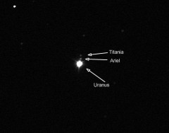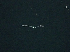 öffnung von mindestens 100 mm, ist er als kleines, blassgrünes Scheibchen zu erkennen. Ab 200 mm Öffnung können, unter gutem Seeing, auch zwei seiner 27 Monde erkannt werden.