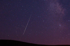 Im Volksmund auch unter dem Begriff "Sternschnuppen" bekannt. Es handelt sich hier um kleine, interplanetarische Staubkörner, Meteoride, welche die Erdbahn kreuzen und mit Geschwindigkeiten von ca. 65 km/Sek. in die Erdatmosphäre eindringen. Dabei erzeugen sie in ca. 60 bis 80 Kilometern Höhe eine Leuchtspur und werden verdampft. Sie bestehen aus Metall und/oder Gestein. Ihre Größe beträgt oft nur die eines Reiskorns. Größere Stücke, etwa wie die eines Pflastersteins, werden meist nicht ganz verdampft und erreichen dann die Erdoberfläche. Diese heißen dann Meteorit.